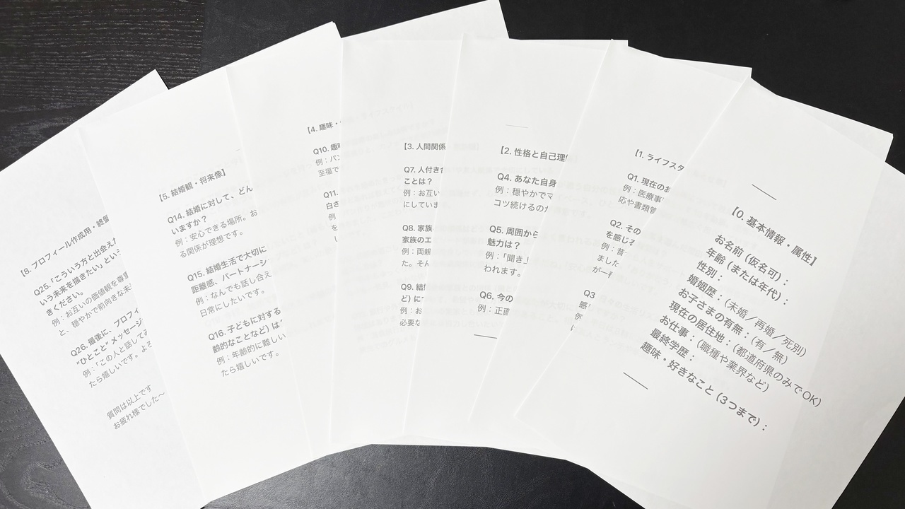 会員さまが普段意識していない“内面の魅力”や価値観を、多角的な質問で丁寧に抽出。